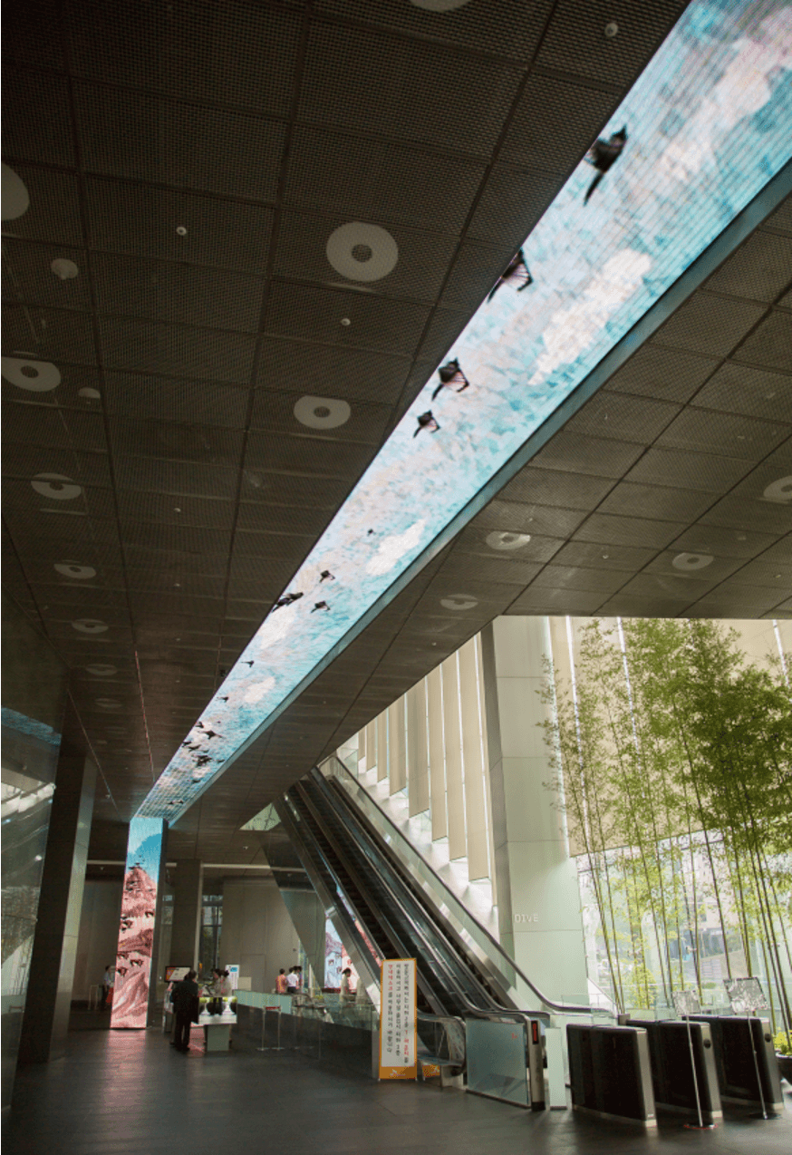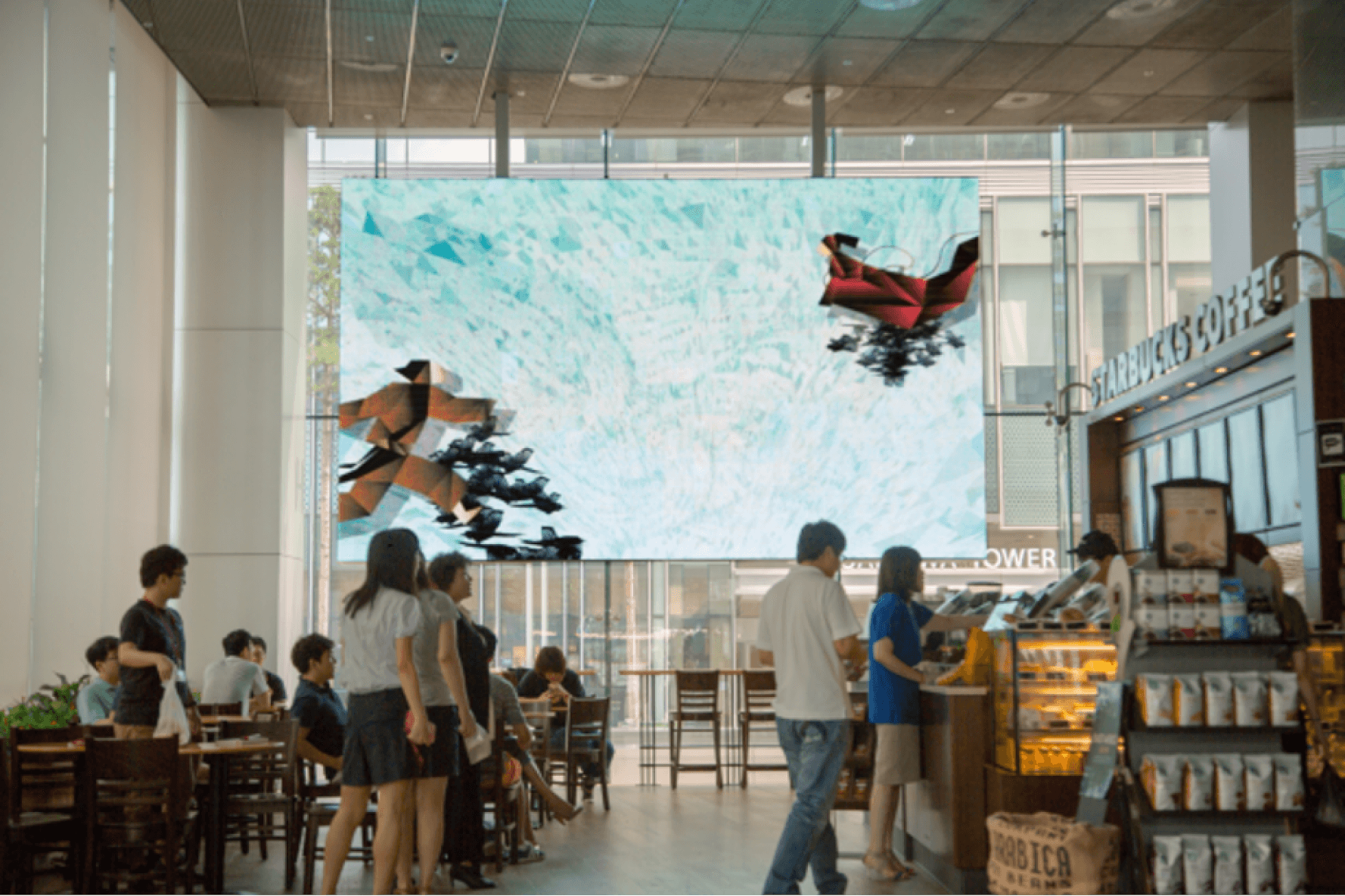 Designed interactive visuals for SK Telecom Nabi Art Center, including the building facade and interior displays.